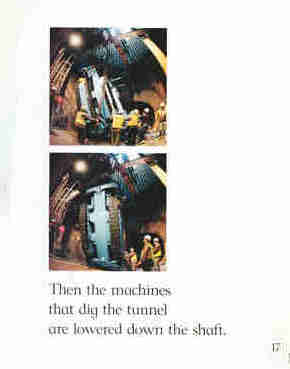 Describes underground areas including subways, bank vaults, and basement offices as well as the machines used to construct these places, dig tunnels, mine coal, and drill for oil.