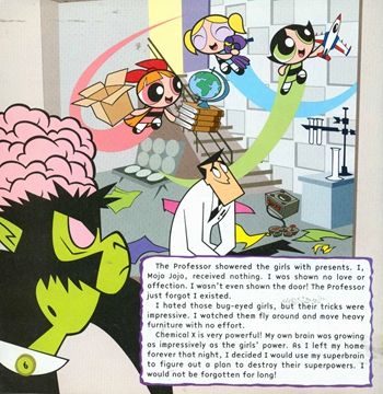 Designed to appeal to boys, who comprise 60 percent of the audience for Powerpuff Girls, this unusual 8x8 tells the story of Townsville's greatest secret from the point of view of its greatest villain, the infamous Mojo Jojo.